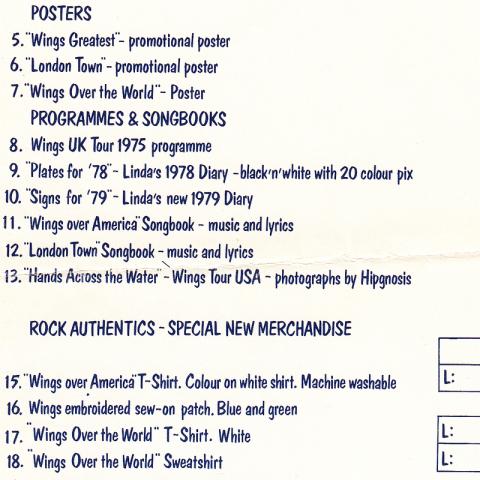 1978 07 10 WINGS FUN CLUB - CLUB SANDWICH - CLUB OFFERS ORDER FORM