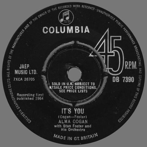 ALMA COGAN - I KNEW RIGHT AWAY - UK - DB 7390 - 1964 10 30 1964 I KNEW RIGHT AWAYPAUL McCARTNEYTAMBOURINE