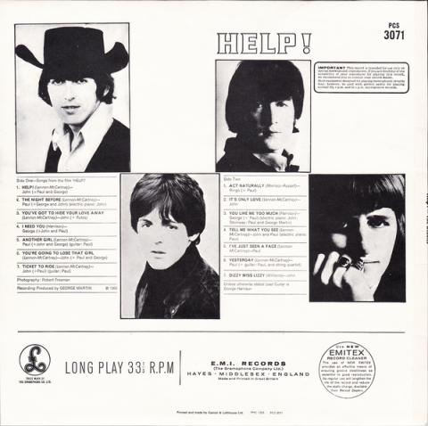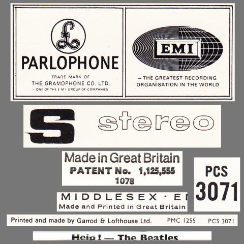 THE BEATLES DISCOGRAPHY UK 1965 08 06 - HELP! - PCS 3071 - F - TWO WHITE EMI LOGO LABEL - BC 13