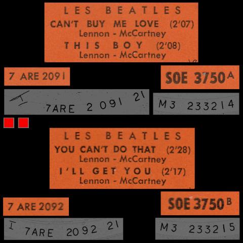 THE BEATLES FRANCE EP - A - 1964 04 06 - SLEEVE 2 RECORD 1 - ODEON SOE 3750 1964 CAN'T BUY ME LOVE THIS BOY YOU CAN'T DO THAT I'LL GET YOU