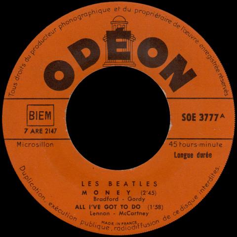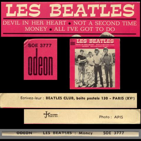 THE BEATLES FRANCE EP - A - 1965 11 19 - SLEEVE 1 RECORD 1 - ODEON SOE 3777 1965 NO VARIATIONS MONEY ALL I'VE GOT TO DO DEVIL IN HER HEART NOT A SECOND TIME