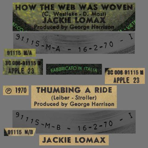 JACKIE LOMAX 1970 02 16 - HOW THE WEB WAS WOVAN ⁄ THUMBING A RIDE -ITALY - 3C 006-91115 M - APPLE 23 1970