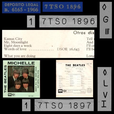 SP253 MICHELLE ⁄ RUN FOR YOUR LIFE ⁄ WHAT GOES ON ⁄ THE WORD 1965 DARK BLUE ODEON 7TSO 1896 - 7 DSOE 16.688 SLEEVE 15 TITLES KANSAS CITY